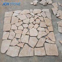 Jardim decorativo bege calcário pátio ao ar livre telhas aleatórias irregular pavimentação pedra