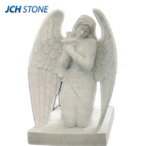 Alta qualidade branco mármore pedra monumento lápide com asas abertas Anjo segurando uma cruz lápide lápide