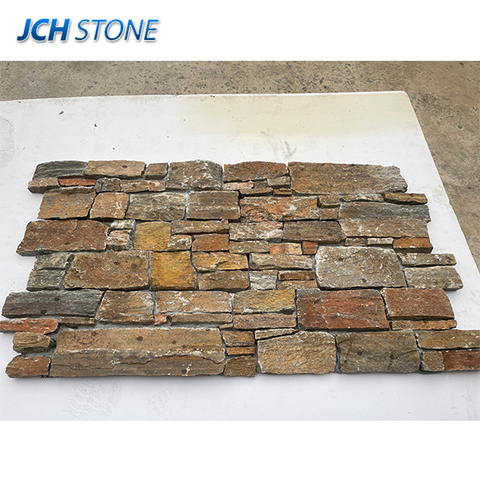 Prezzo competitivo esterno naturale quarzo arrugginito pietra casuale e parete ruvida rivestimento decorativo cultura piastrelle di pietra