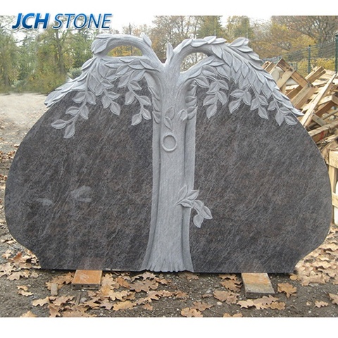 Pierre tombale indienne en granit Aurora avec des fleurs de feuilles d'arbre sculpture en granit pierre tombale Monument pierre tombale