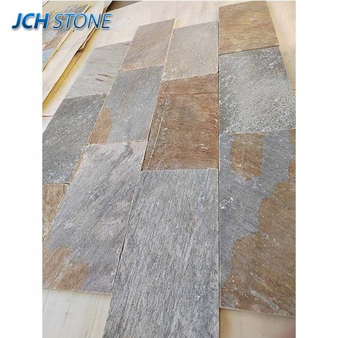 Carreaux de sol en pierre d'ardoise naturelle Cubes maillés Feuilles de mosaïque Pavé Champignon Pierre murale Placage Extérieur Intérieur Pierre de culture